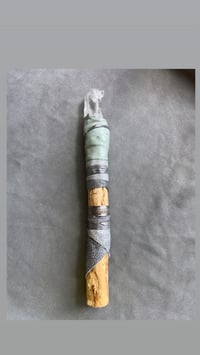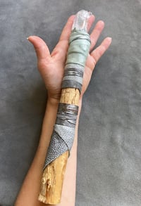 Just under 12' of driftwood from California + a dazzling Lemurian crystal cluster with extraordinary markings. This is the perfect travel size wand.