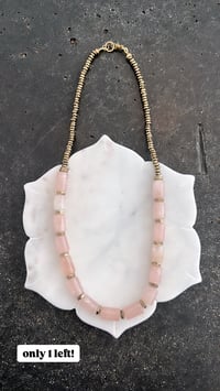 Medium sized pyrite beads with beautiful, pink vintage rose quartz beads. LOVE this vibe.