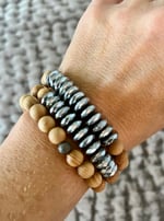 *new* SILVER HEMATITE + SANDALWOOD bracelets