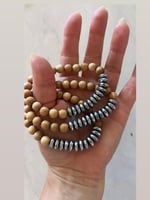 Stunning combo of silver and sandalwood stretchy bracelets.