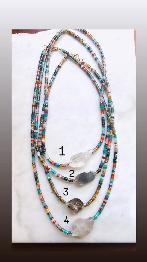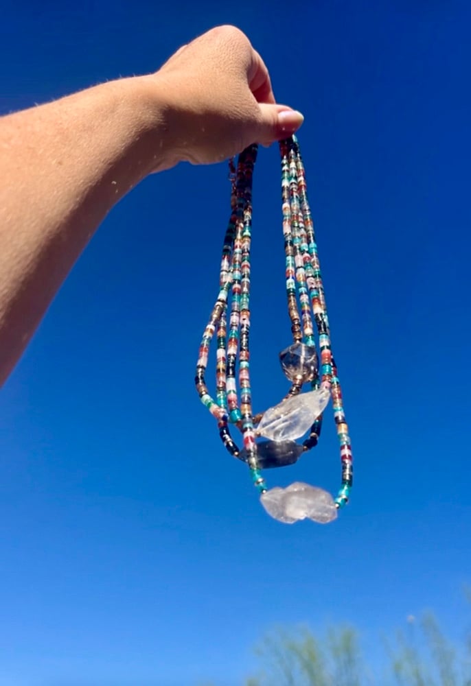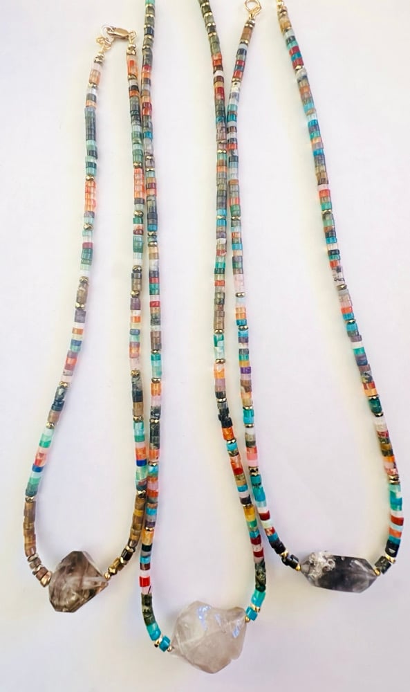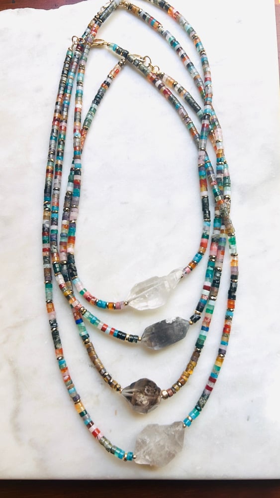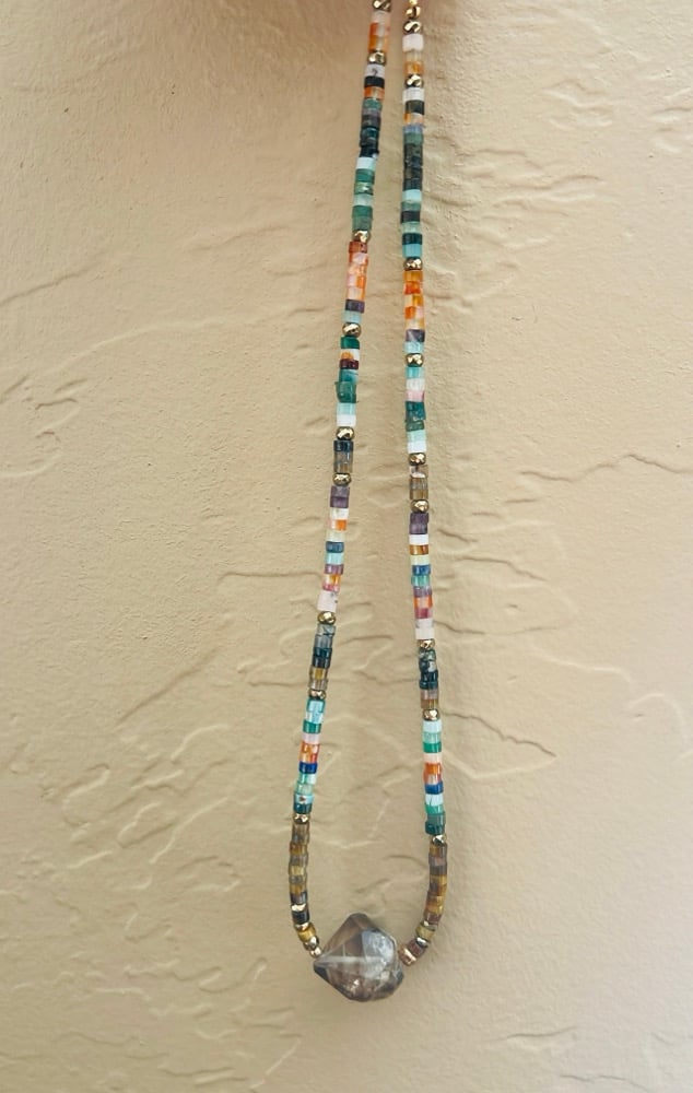 Handmade while in Tucson, AZ. Herkimers from New York/USA and Quartz from Tibet.
