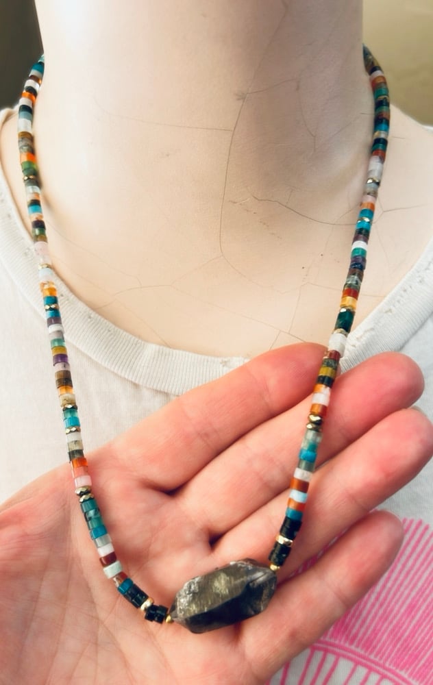 I scored these stunning rainbow gems in Tucson at the Gem show and a huge lot of Herkimers + Tibetan quartz (these high-quality, drilled crystals are so hard to come by-and I guess it was meant to be!).